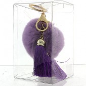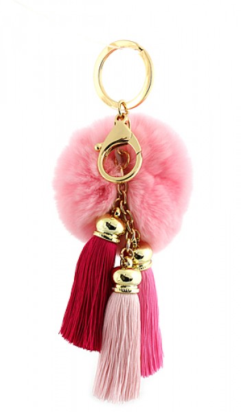Key Chain - Rabbit Fur Pom Pom w/ Tassel - Pink