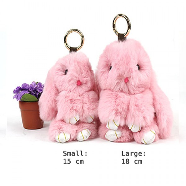 Key Chain - Bunny Rabbit Fur - Pink - Small