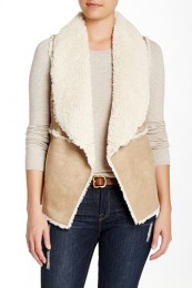 Cardigans & Vests - Faux Suede with Shearling Design Vest - Ivory